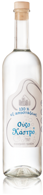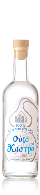 Το ΟΥΖΟ ΚΑΣΤΡΟ με καταγωγή από το καστροχώρι Άγιος Γεώργιος Συκούσης της Χίου, παράγεται από 100% απόσταξη γλυκάνισου, μάραθου, φυσικής μαστίχας Χίου και άλλων αρωματικών σπόρων, μέσα σε χάλκινους παραδοσιακούς άμβυκες.