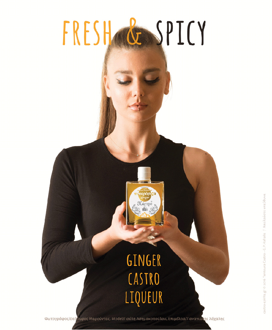 TENTOURA CASTRO – G.P. HAHALIS distillery presents the GINGER CASTRO liqueur from 100% natural fresh ginger extracts.